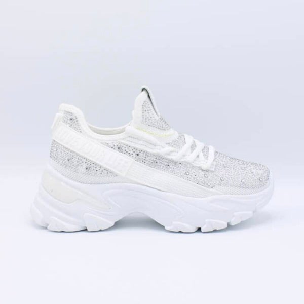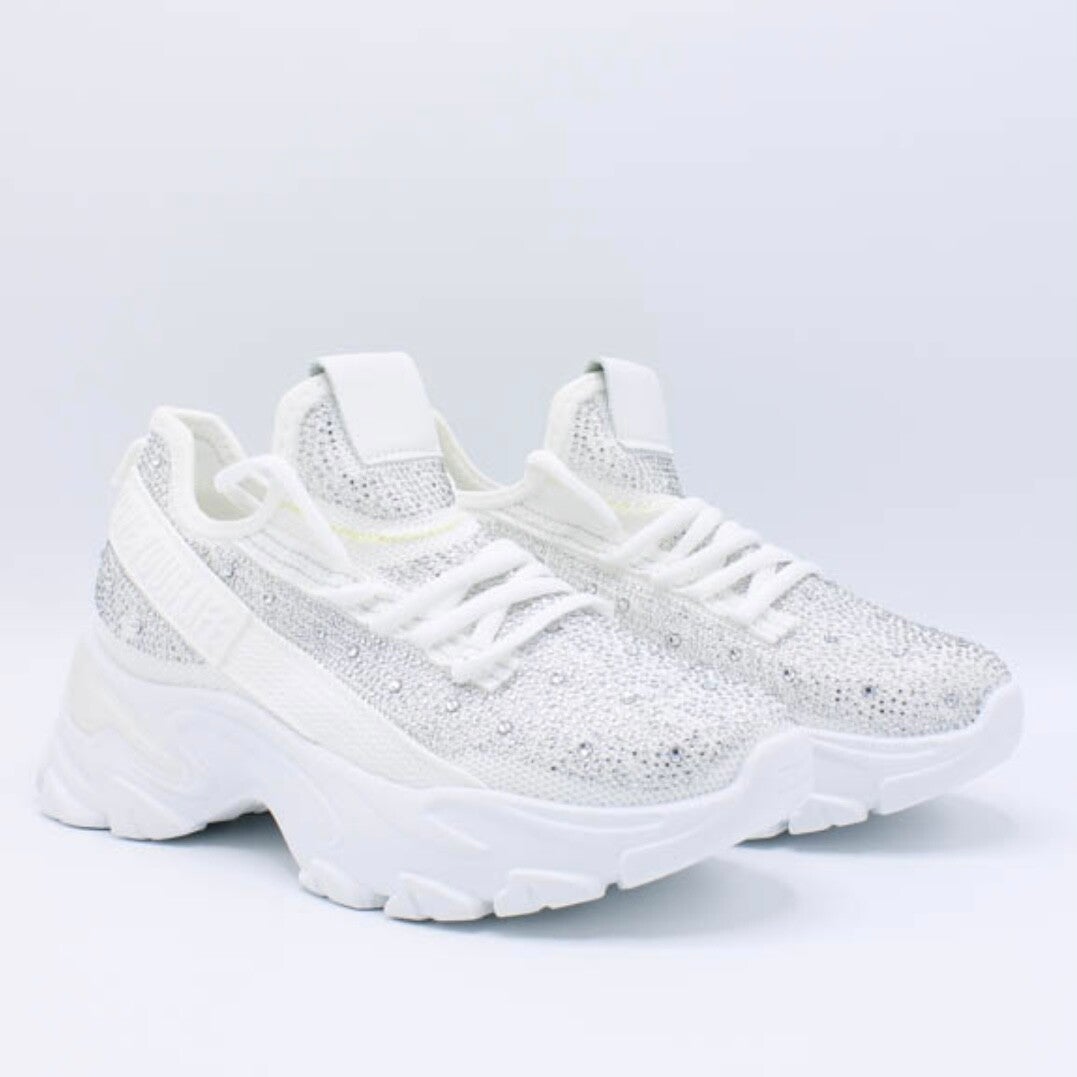Witte sneakers met de tekst "Love your life" erop en mooi afgewerkt met strass steentjes. Ze hebben een fijn voetbed en vallen goed op maat.