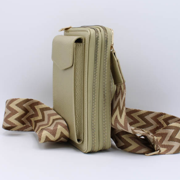 Dit model heeft 3 aparte vakken, 1 voor een telefoon; afsluitbaar door middel van een drukker. En 2 aparte vakken voor pasjes en geld, deze zijn afzonderlijk afsluitbaar door middel van een rits.