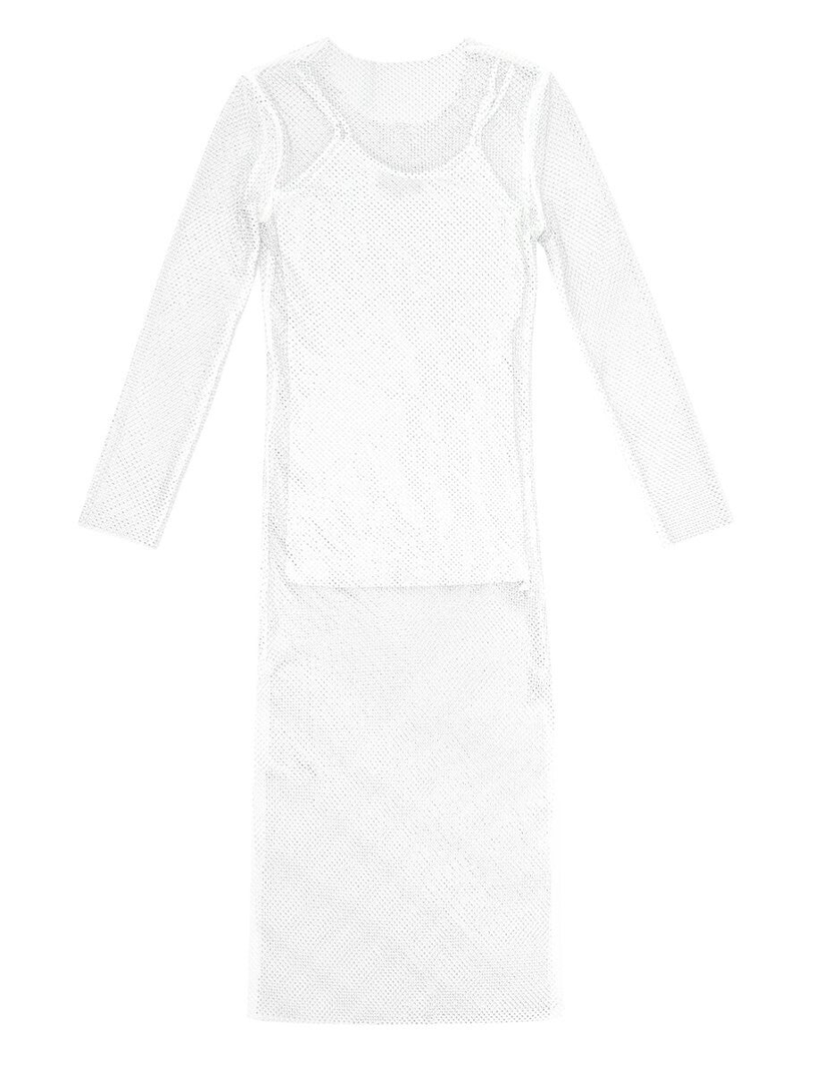 De jurk schittert bij elke beweging, door alle mooie steentjes en is voorzien van een comfortabel onderjurkje voor een perfecte pasvorm.