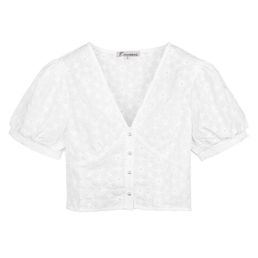 Voel de zomer met onze luchtige crop top met vrolijke bloemenprint, verkrijgbaar in zowel wit als zwart.
