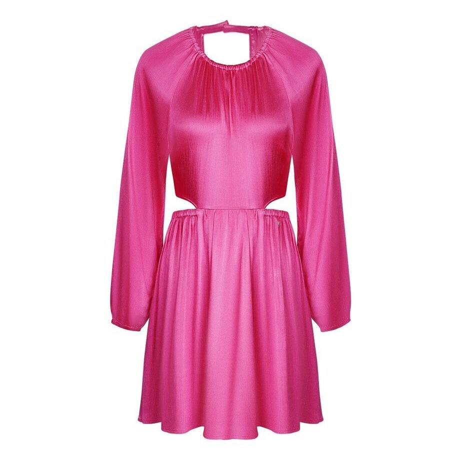 Met een open rug, speelse striksluiting en deze glanzende stof shine je bij elke stap.