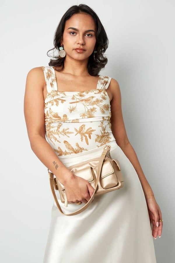 Mooie body met een beige bloemenprint, het is nauwsluitend en heeft een mooie halslijn. Leuk om te combineren op een jeans of een lange rok!Good to know: maat L is draagbaar van maat 38 t/m 42