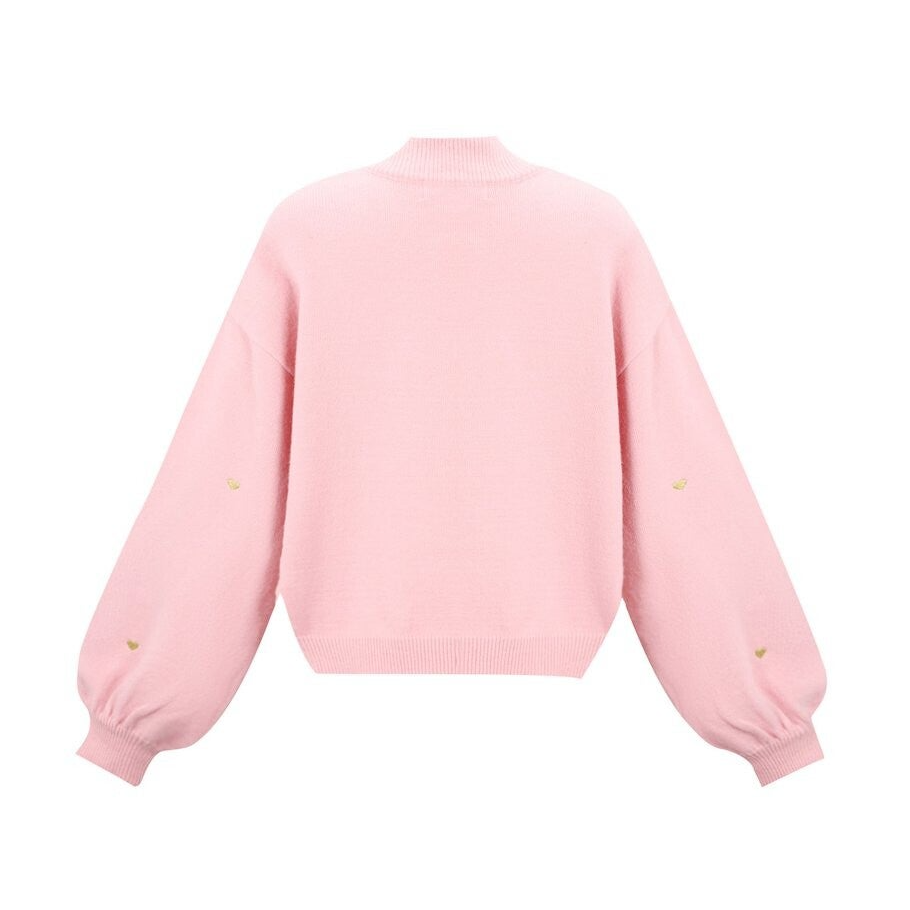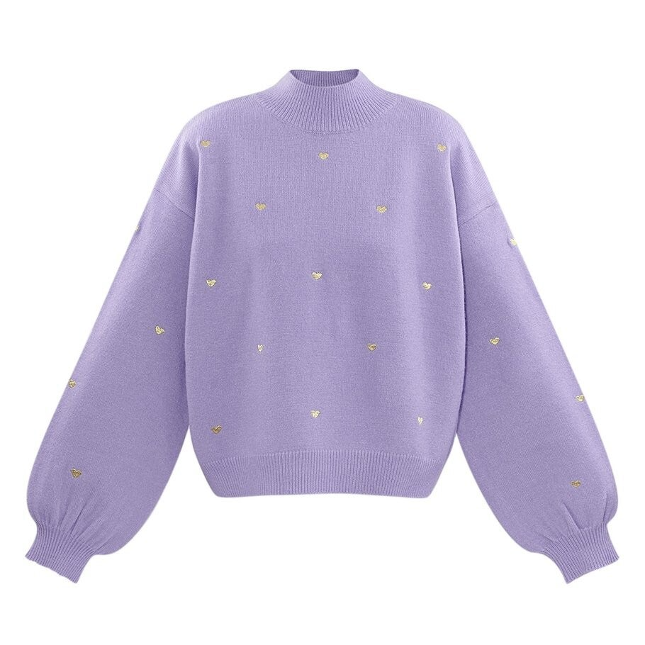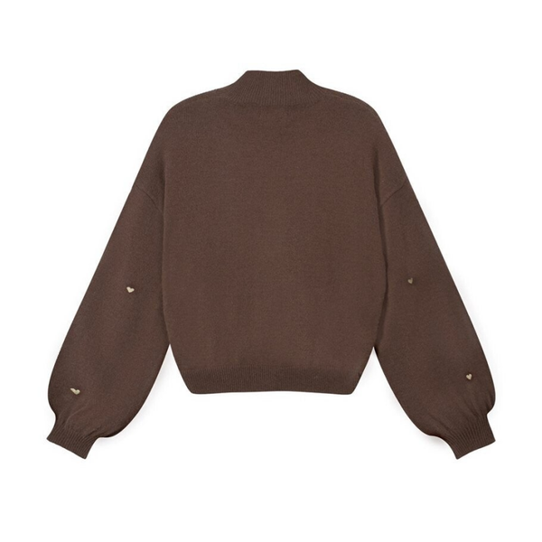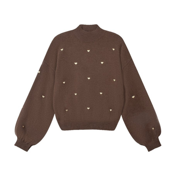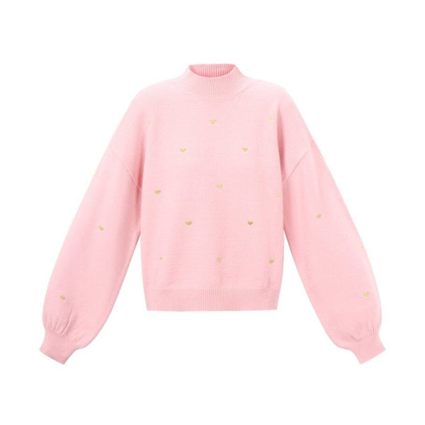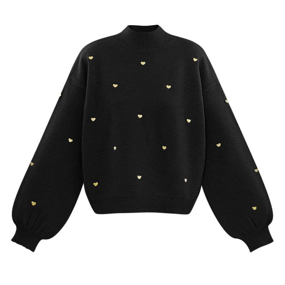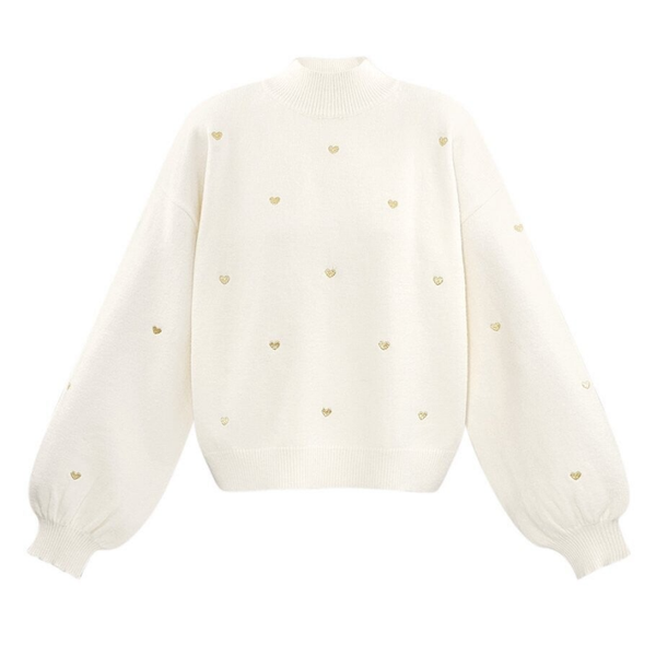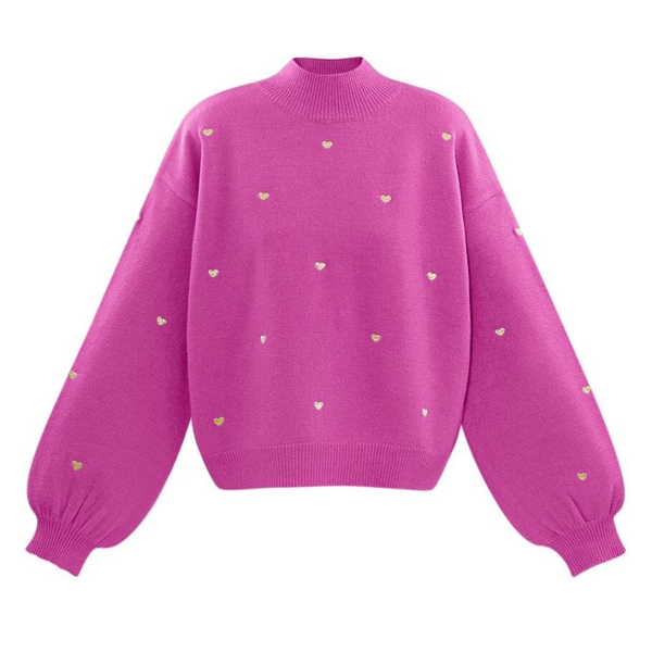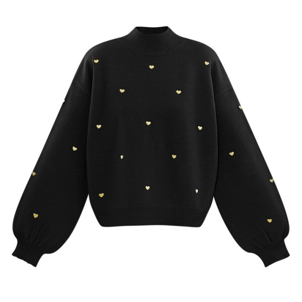 Het is versierd met subtiele, gouden hartjes die elke outfit een vleugje liefde en glans geven. Gemaakt van een heerlijk zachte stof en ontworpen voor ultiem comfort, is dit je nieuwe go-to voor de herfst- en winterdagen. Het is zacht, warm en betoverend mooi..