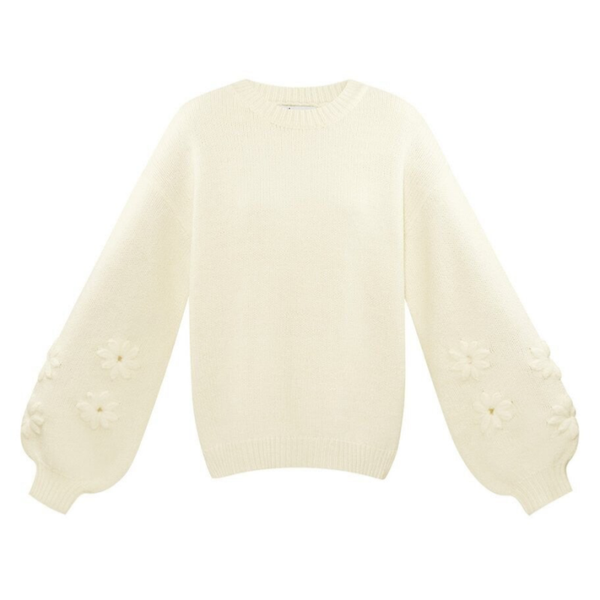 Aan het uiteinde van de mouwen bloeit een prachtig gebreid bloemenpatroon op, alsof de trui zijn naam eer aan doet. Met deze warme trui kom jij de koudere dagen door!